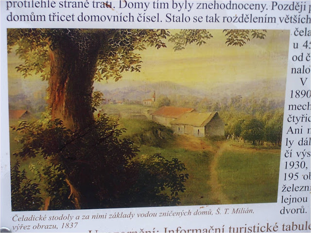 Krásný obraz zmizelé části obce Rajhradu, zvané Čeladice. Čeladice vystrnaděny ze své existence tratí Břeclav-Brno.
